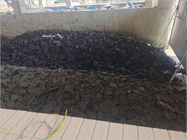 80吨/小时脱脂、漂白、染色废水污泥压滤后的泥饼效果图